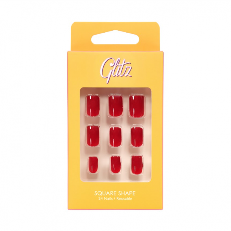 جليتز - اظافر صناعية لصق ذاتي لون أحمر - 1