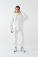 طقم بدلة رياضية كبيرة الحجم للجنسين باللون الأبيض - قطعة أساسية، من الصوف المنسوج بثلاث خيوط؛ هودي، قاعدة مرنة