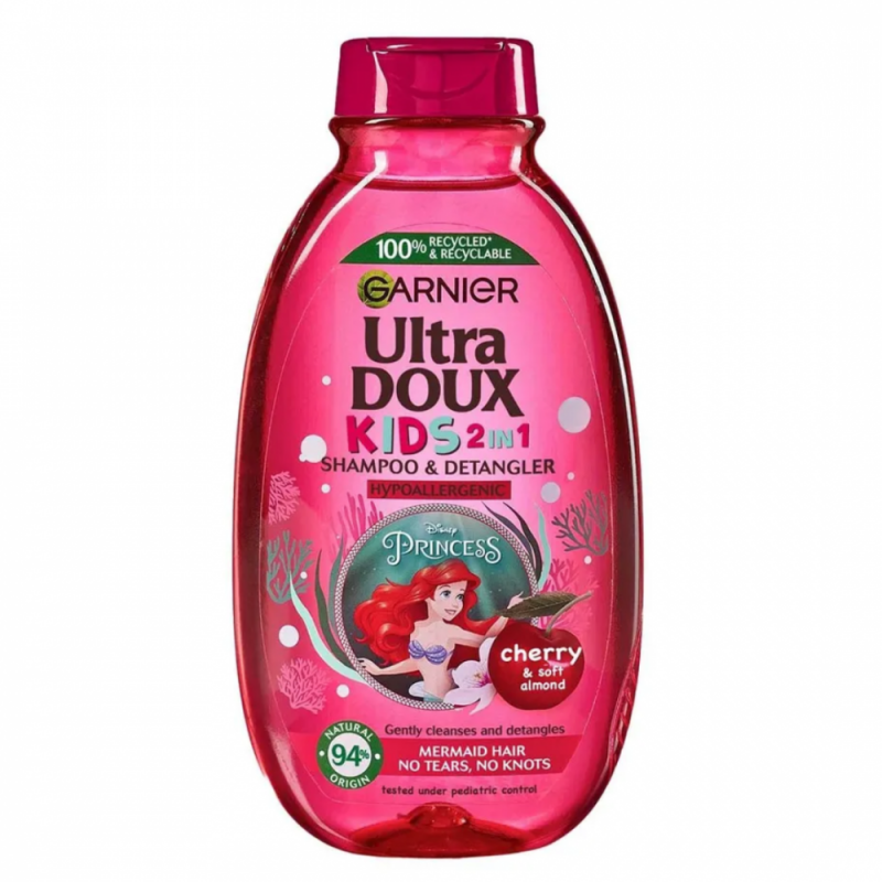 غارنييه الترا دوكس شامبو وبلسم للأطفال 2 في 1 بالكرز واللوز الناعم لتسريح أسهل ولحظات ممتعة للأطفال أثناء استخدامه