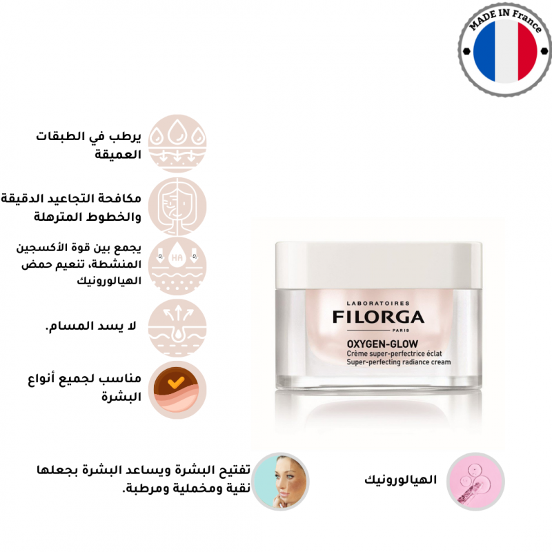 كريم Filorga Oxygen Glow Super Perfecting Radiance - يضمن كريم Filorga Oxygen Glow لتفتيح البشرة في لحظة تقريبًا أن بشرتك نقية ومخملية ومرطبة.