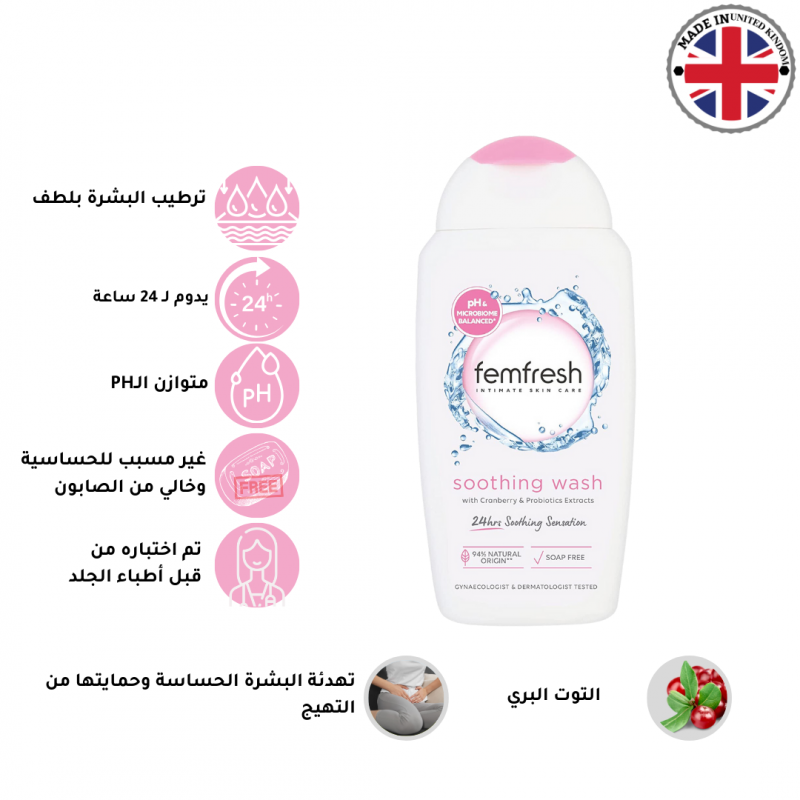 وصف المنتج تم اختباره من قبل أطباء الجلدية والنسائية وهو مناسب للاستخدام اليومي، اشطفيه جيدًا بالماء الدافئ. مخصص للاستخدام الخارجي فقط. حافظي وابقيه بعيدًا عن العينين. توقفي عن الاستخدام في حالة ظهور تهيج أو طفح جلدي. الميزات الرئيسية: غني بمستخلصات التوت البري وزهرة الذرة المرطبة متوازن درجة الحموضة للبشرة تم اختباره من قبل أطباء الجلدية وأمراض النساء غير مسبب للحساسية وخالي من الصابون متعدد الأفعال إذا كان الأمر معقدًا
